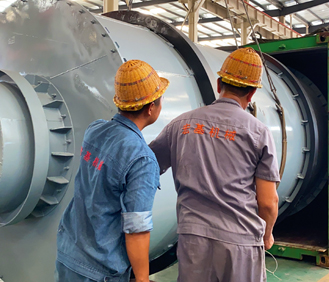 本公司高嶺土回轉窯依據筒體規格尺寸分為十一個型號,范圍為?1.6×32m-?4×80m,筒體直徑2.2m以上(含2.2m)配輔助傳動,3.0m以上(含3.0m)支撐由三組變為四組,窯轉速0.58-2.85r/min,斜度3.5-4.0%,配套主電機功率18.5KW-355KW,滿足時產2t-20t范圍內高嶺土礦產品的煅燒需求。